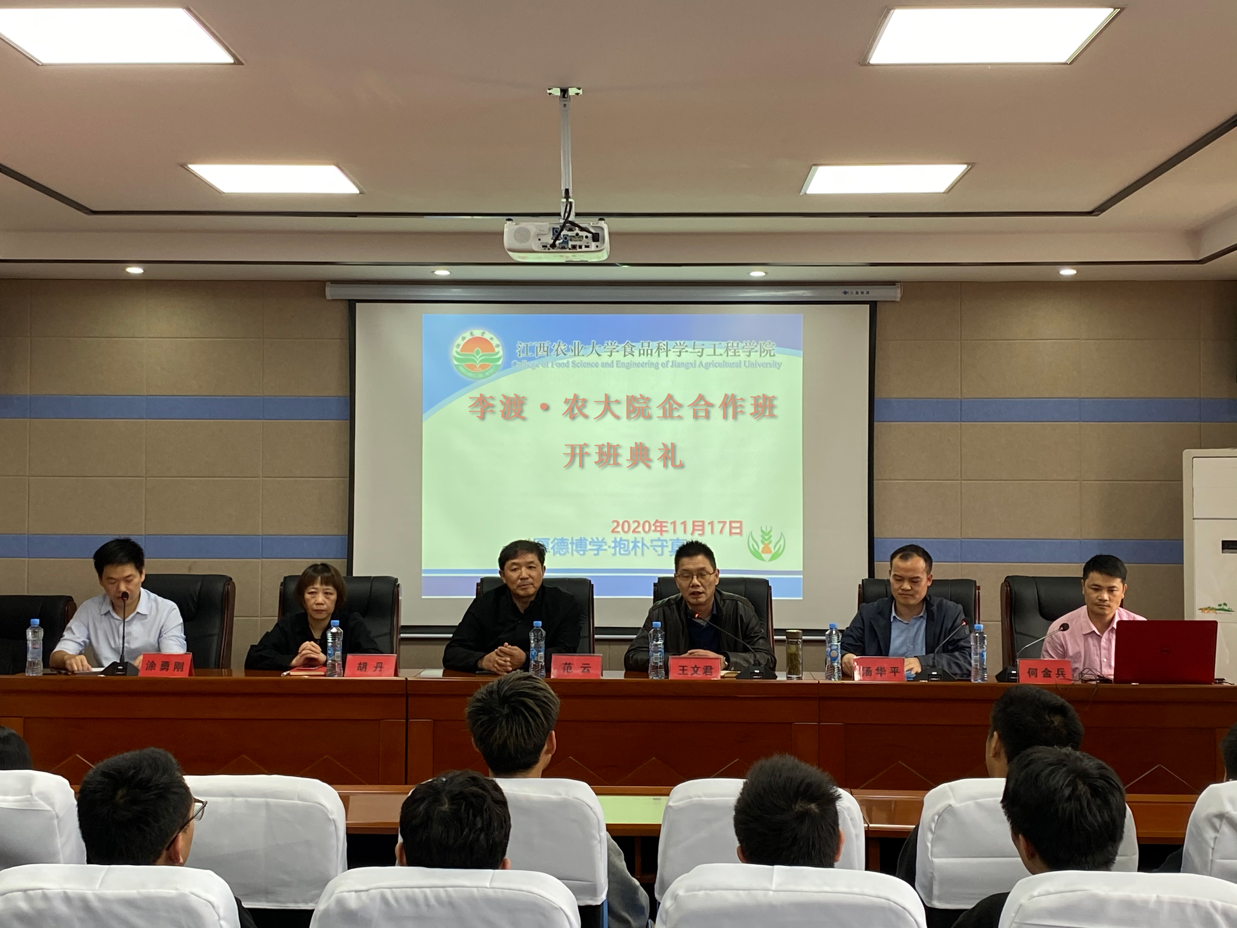 会上,学院院长王文君江西李渡酒业有限公司高端事业部总经理何金兵等一行到来表示欢迎他表示,2020年是“十三五”规划收官之年和谋划“十四五”规划的关键之年,同时还是江西农业大学建校115周年,这将是双方合作的一个重要节点,期待双方能够进一步拓展合作领域,全面深化在人才培养科研转化、教学实训等方面的合作,收获更加丰硕的合作成果。企业方何金兵对食品学院积极、务实地推进企合作、为地方企业培养大量优质食品行业人才表示感谢。