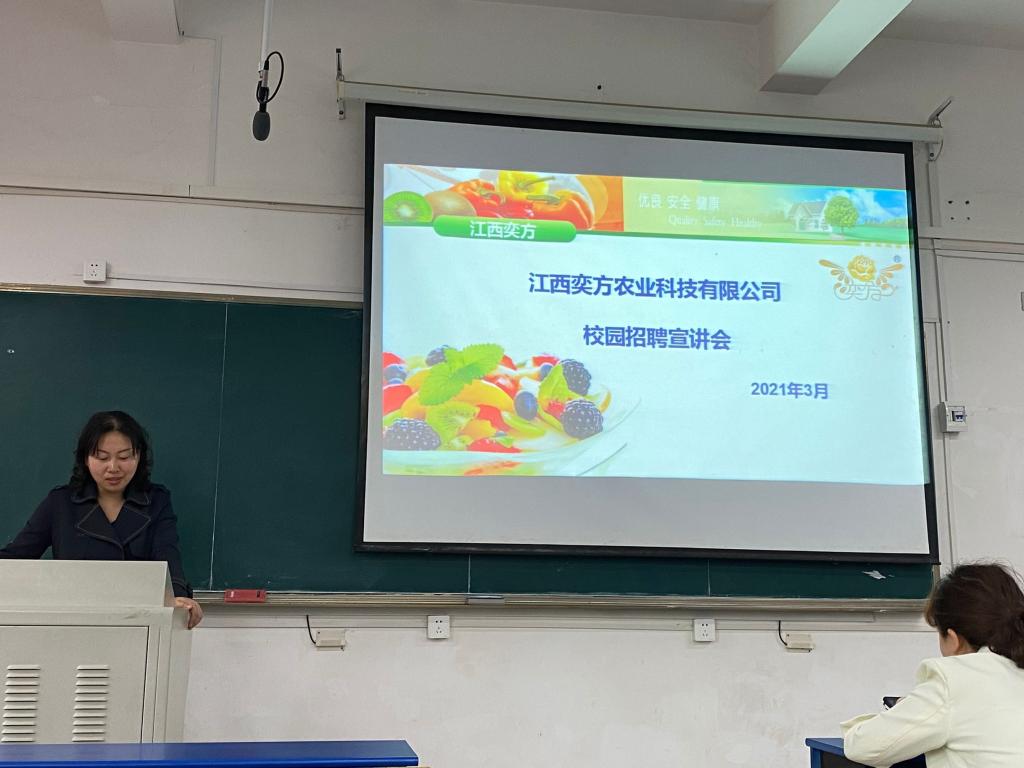 为进一步贯彻落实党中央、国务院“六稳”“六保”决策部署,引导学院广大毕业响应“留赣就业创业”号召,3月30日下午,学院邀请江西奕方农业科技有限公司举办食品相关专业专场宣讲会,此次宣讲吸引了学院各年级100余名学生参加宣讲。