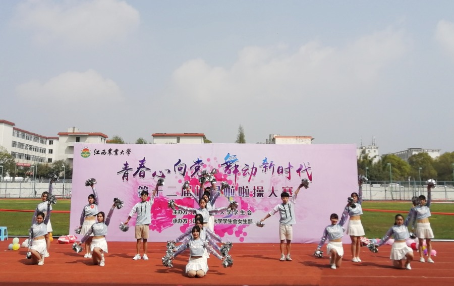 3月30日下午两点,江西农业大学第十二届“青春心向党舞动新时代”校园啦啦操比赛在北区田径场举行。