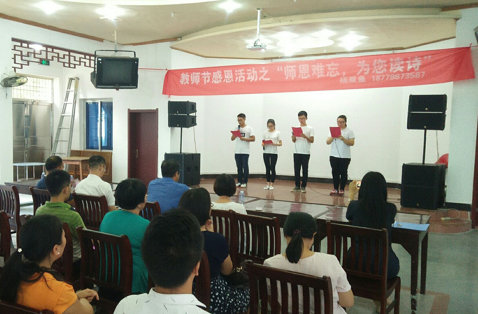 喜迎十九大,欢度教师节。在召开十九大之际,为了向广大教师和教育工作者表达最真诚的感谢和最崇高的敬意,食品学院学生群体在2017年9月12 日下午于工会俱乐部组织举办了以“师恩难忘,为您读诗”为主题的教师节读书朗诵活动。