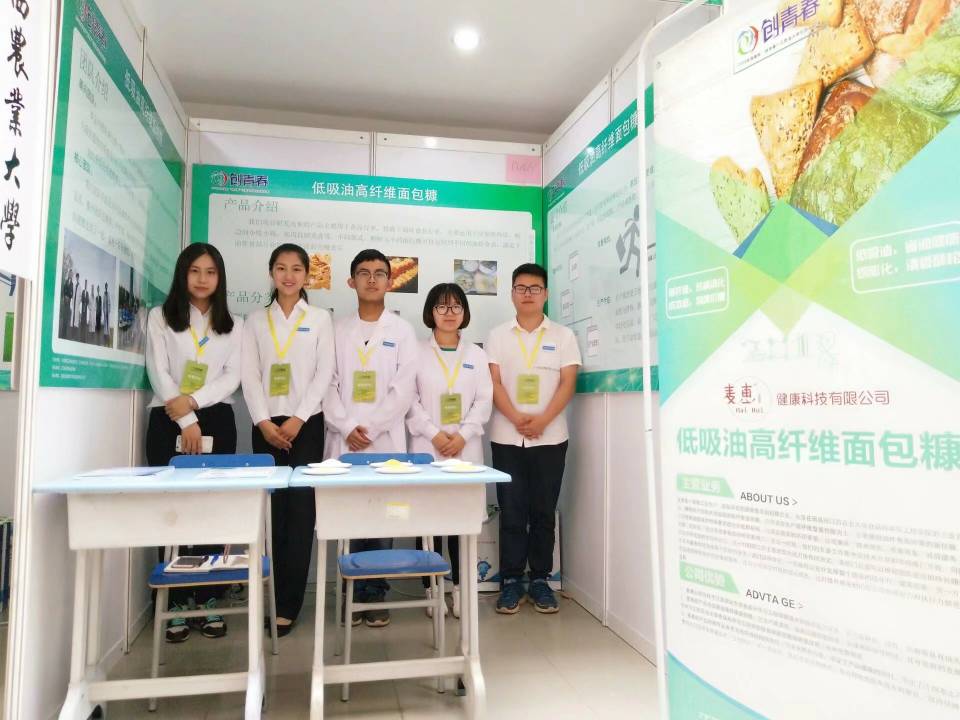 6月2日,2018年创青春全国大学生创业大赛江西省决赛在江西应用科技学院举行。 我校共有六个项目参展,其中我院的《低吸油高纤维面包糠》项目荣获江西省银奖。此项目的指导老师是肖建辉、牛丽亚;团队成员是:刘颖、戴冰儿、胡梁森、李睿欣、刘静欣、王文玉、李阳成、胡安琪。